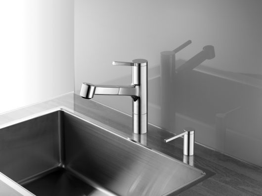ברז תוצרת KWC שוויץ, בעל מנגנון הפעלה קרמי ייחודי המאפשר בטיחות וחסכון במים, פייה מתפרקת לניקוי קל של אבנית, בידוד מלא של גוף המזלף ממים חמים.
