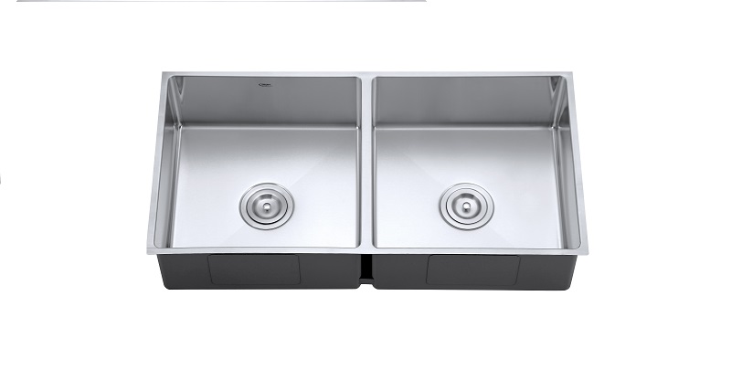 כיור נירוסטה כפול, פנים הכיור בעל רדיוסים מעודנים של 15 מעלות,