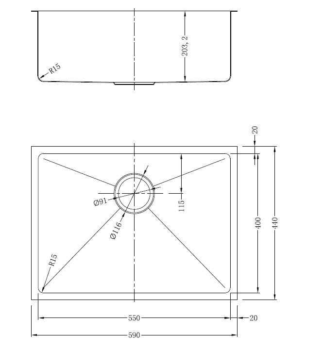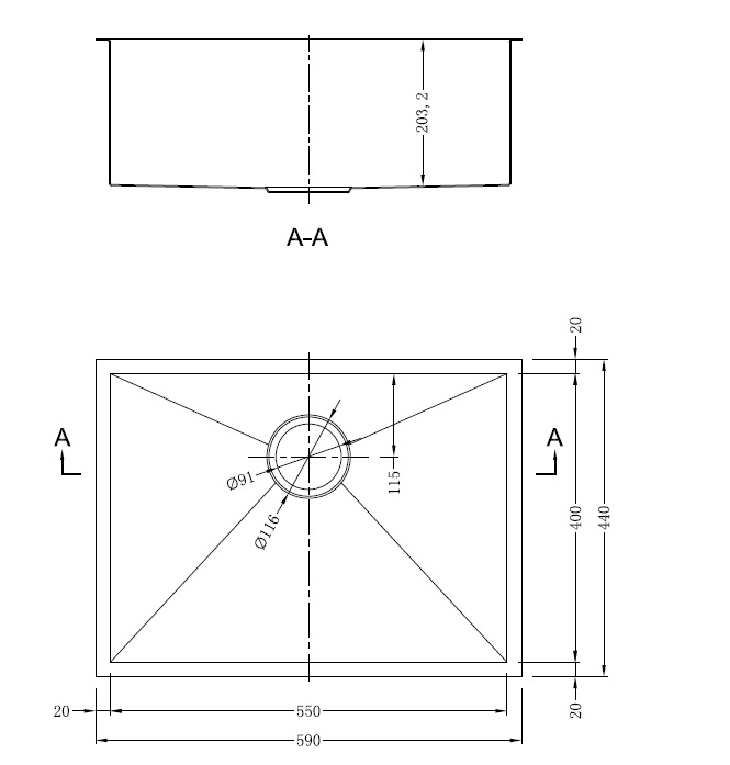 עומק הכיור: 203 מ"מ