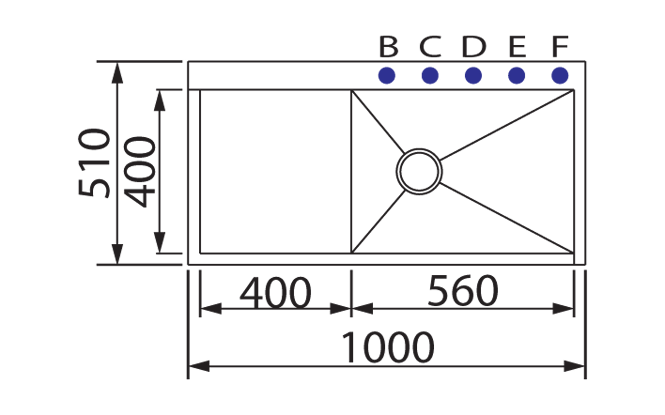 עומק משטח (חיצוני) מינימלי 60 ס"מ