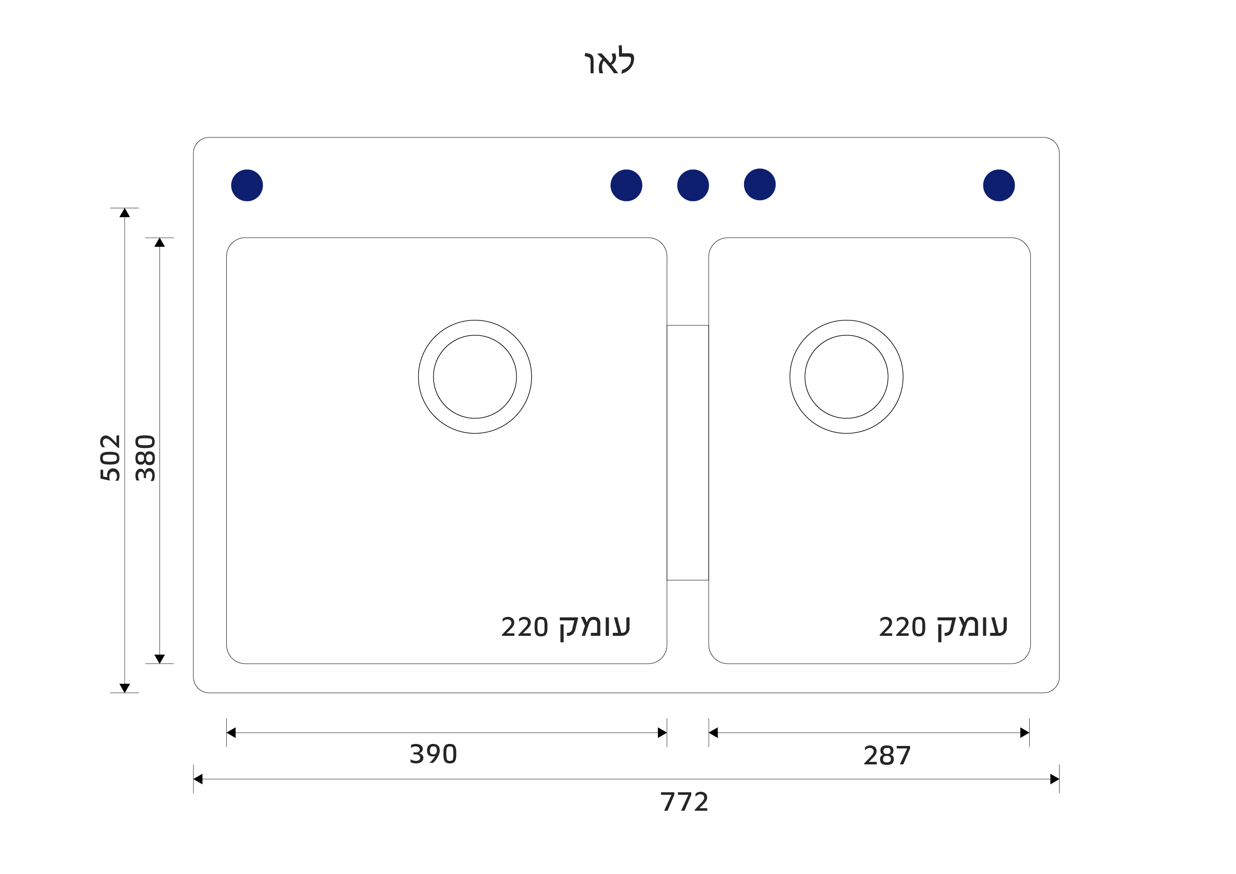 עומק משטח (חיצוני) מינימלי 60 ס"מ